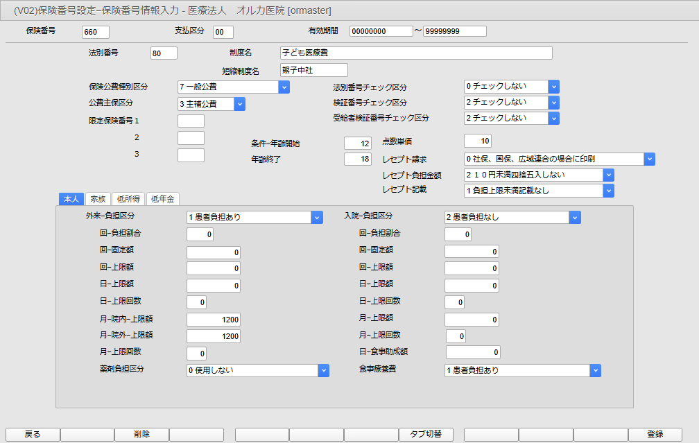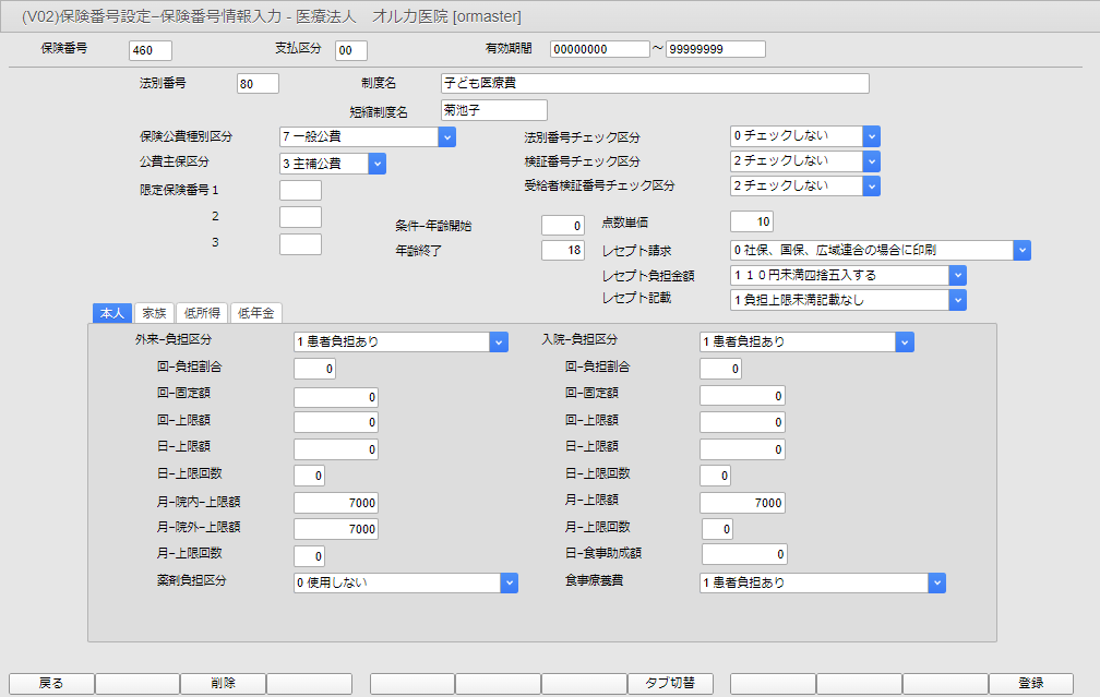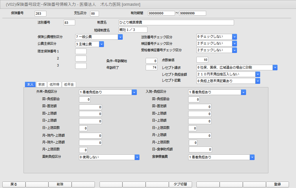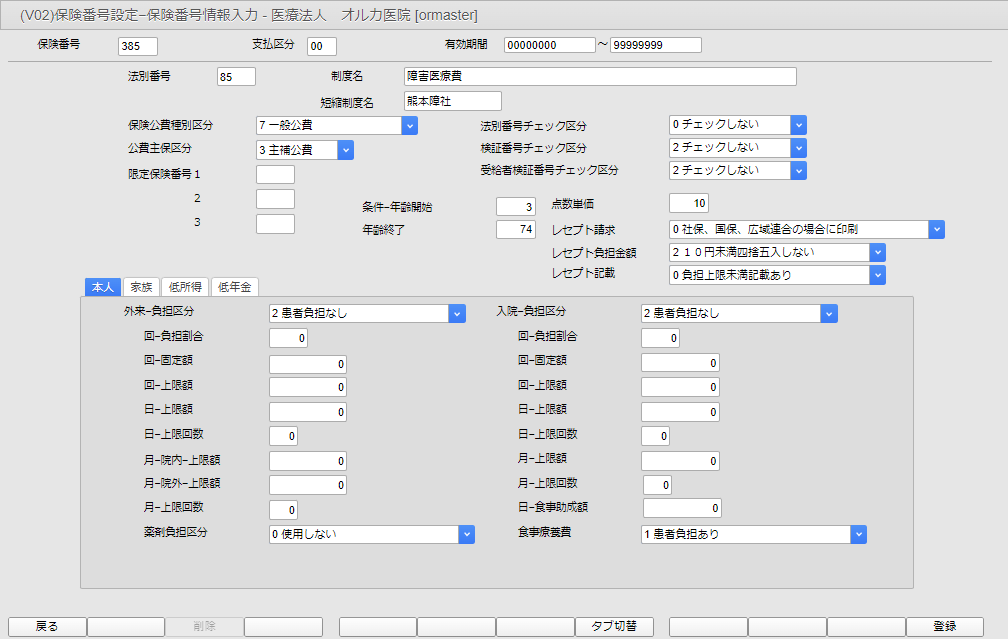 - 2009-02-24:保険番号マスタ設定 更新※画像ファイルの入れ替えのみで、設定内容の変更はありません(141/142/143/145/180/241/242/243/342)
